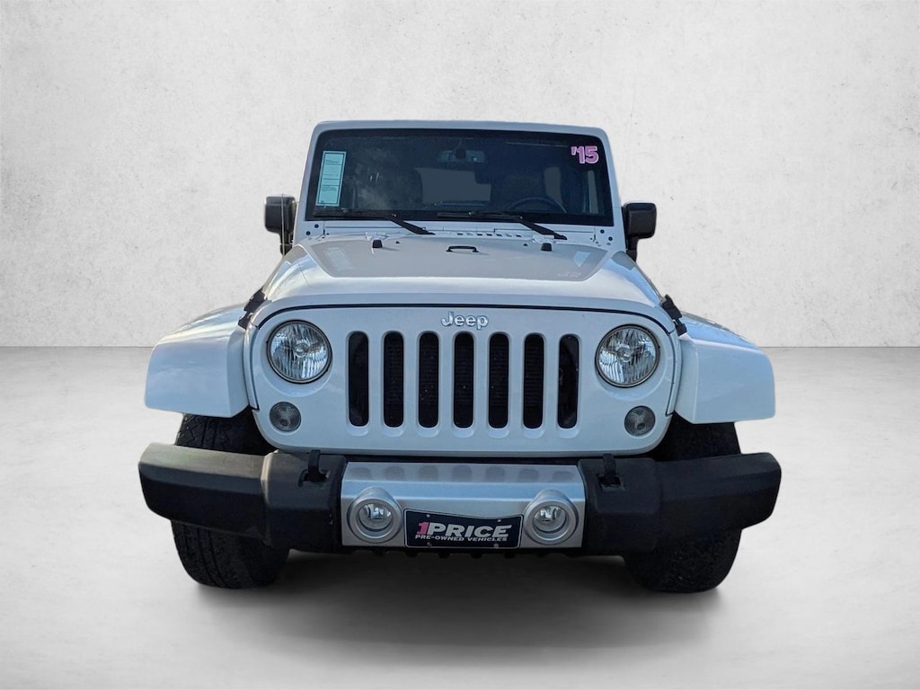 2015JeepWrangler Unlimited With its full CARFAX one-owner history report, you'll know exactly what you are getting with this well-kept Jeep Wrangler Unlimited. This SUV gives you versatility, style and comfort all in one vehicle. With 4WD, you can take this 2015 Jeep Wrangler Unlimited Sahara to places roads don't go. It's all about the adventure and getting the most enjoyment out of your new ride. Low, low mileage coupled with an exacting maintenance program make this vehicle a rare find. More information about the 2015 Jeep Wrangler Unlimited: With standard 4-wheel drive, the classic Wrangler is one of the best SUV values available. The 6-speed manual transmission helps the Wrangler achieve a decent 17 mpg city and 21 mpg highway rating. Jeep considers the Wrangler's off-road prowess integral to the brand and they continue to make one of the most capable 4-wheel drive vehicles available. This model sets itself apart with 2- and 4-door configurations available, Iconic styling, and impressive off-road prowess